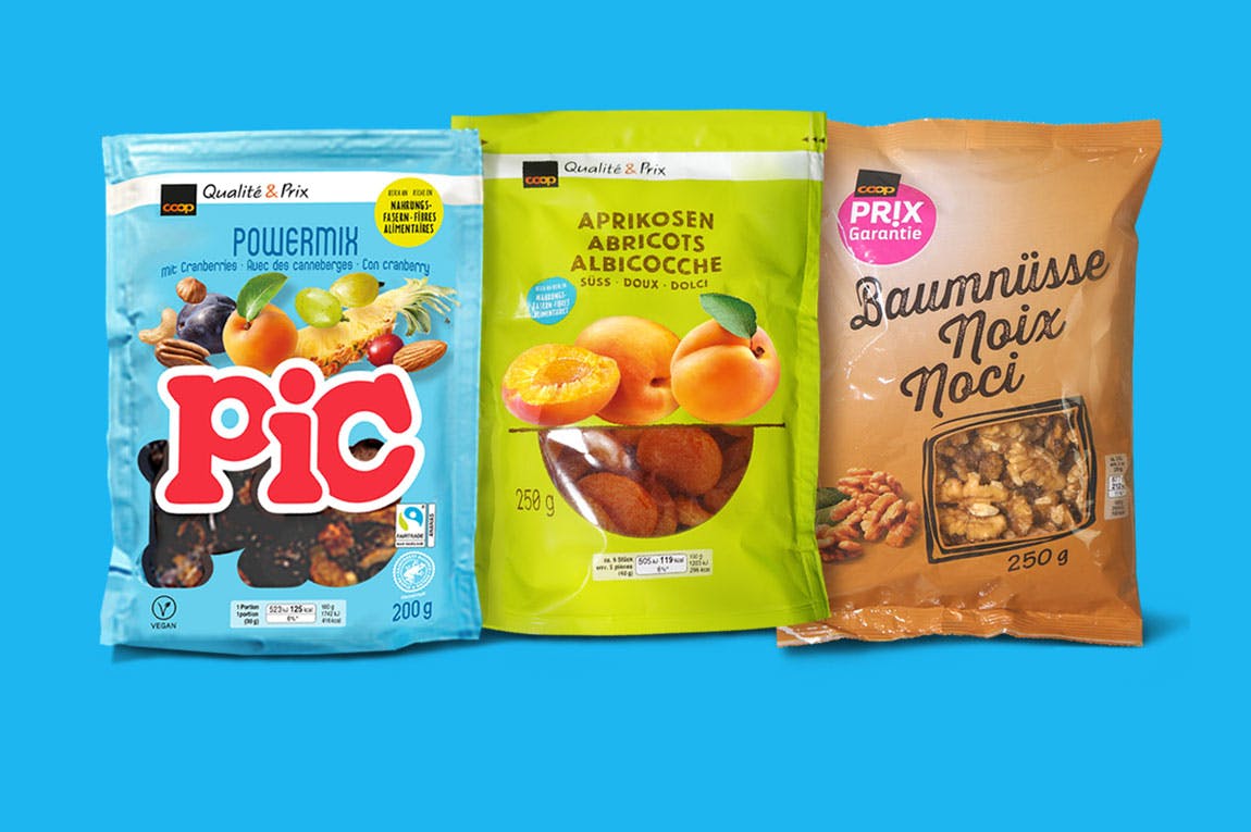 Trockenfrüchte & NüsseDas Front Panel einer Verpackung ist die Werbefläche, welche die Aufmerksamkeit der Konsument·innen im Bruchteil einer Sekunde fesseln muss. Dabei spielen mehrere Faktoren zusammen: Emotionalität und Appetite Appeal durch adäquates Design für die Zielkundschaft, ganzheitlich ausgelegt durch hoch kulinarische, lustauslösende Produktdarstellungen, ob Fotografie oder Illustration. Darin liegt unsere Kernkompetenz. Die messbare Steigerung der Verkaufszahlen durch neues Design bestätigt unsere Leistungen immer wieder. Folgend einige Beispiele: