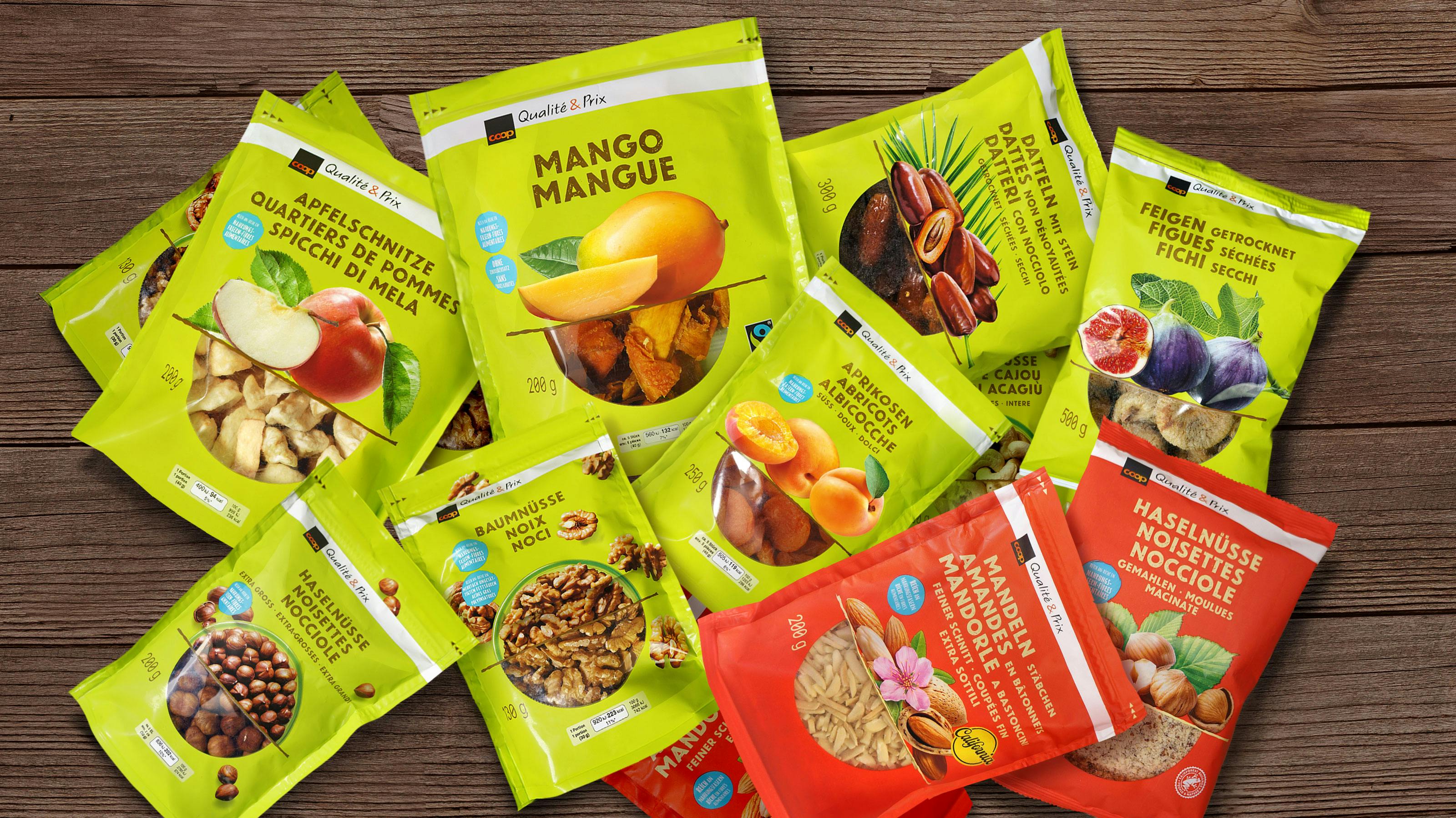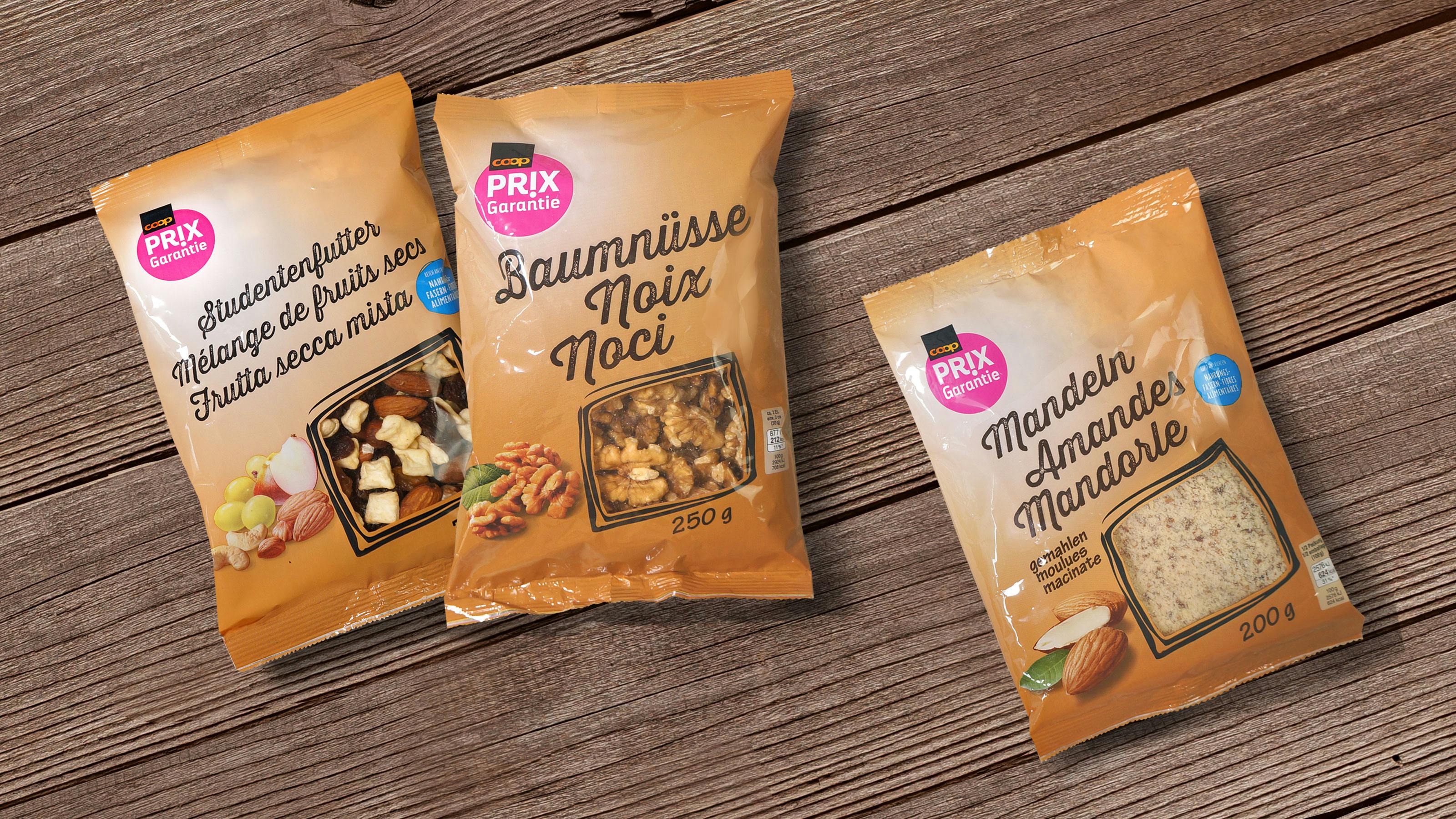 Für den Relaunch der Trockenfrüchte von QP (Qualité & Prix) und PG (Prix Garantie) beauftragte uns Coop mit dem Ziel, die QP Range auf das Niveau eines Markenproduktes anzuheben. Später wurden die Frucht- und Nussmischungen als separate Gruppe namens PIC neu gestaltet.